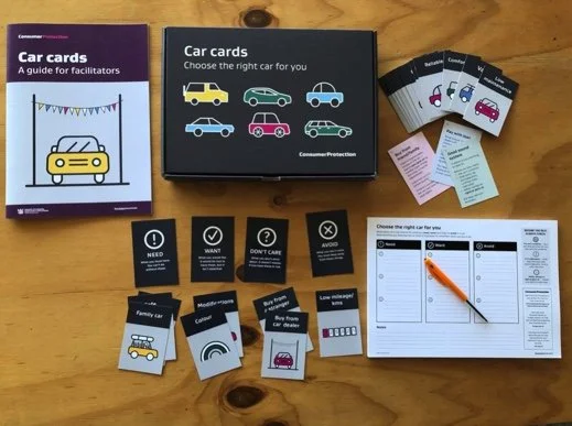What we did: We visited an array of community service providers to understand how they worked and figure out a clear problem statement. It became apparent there was a need for tailored tools they could use to simply communicate key messages. We ran a co-design workshop with service providers and their customers to create prototypes, which we tested. Quickly iterating on ideas in the field, we developed a high-spec prototype of the toolkit, which we call Car Cards.